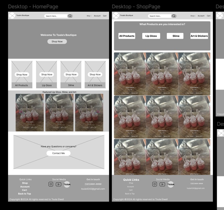 Currently, "Toula's Boutique" is in its design and development phase. I'm focusing on creating